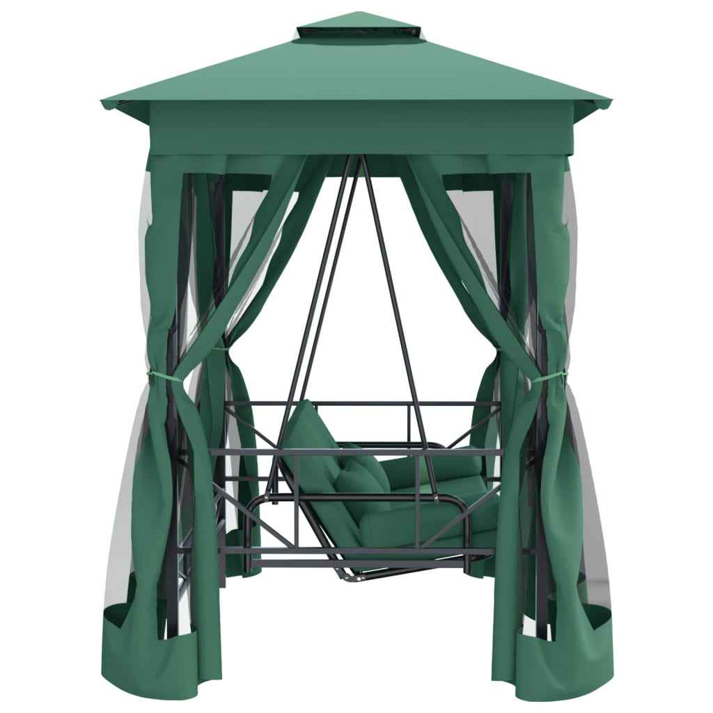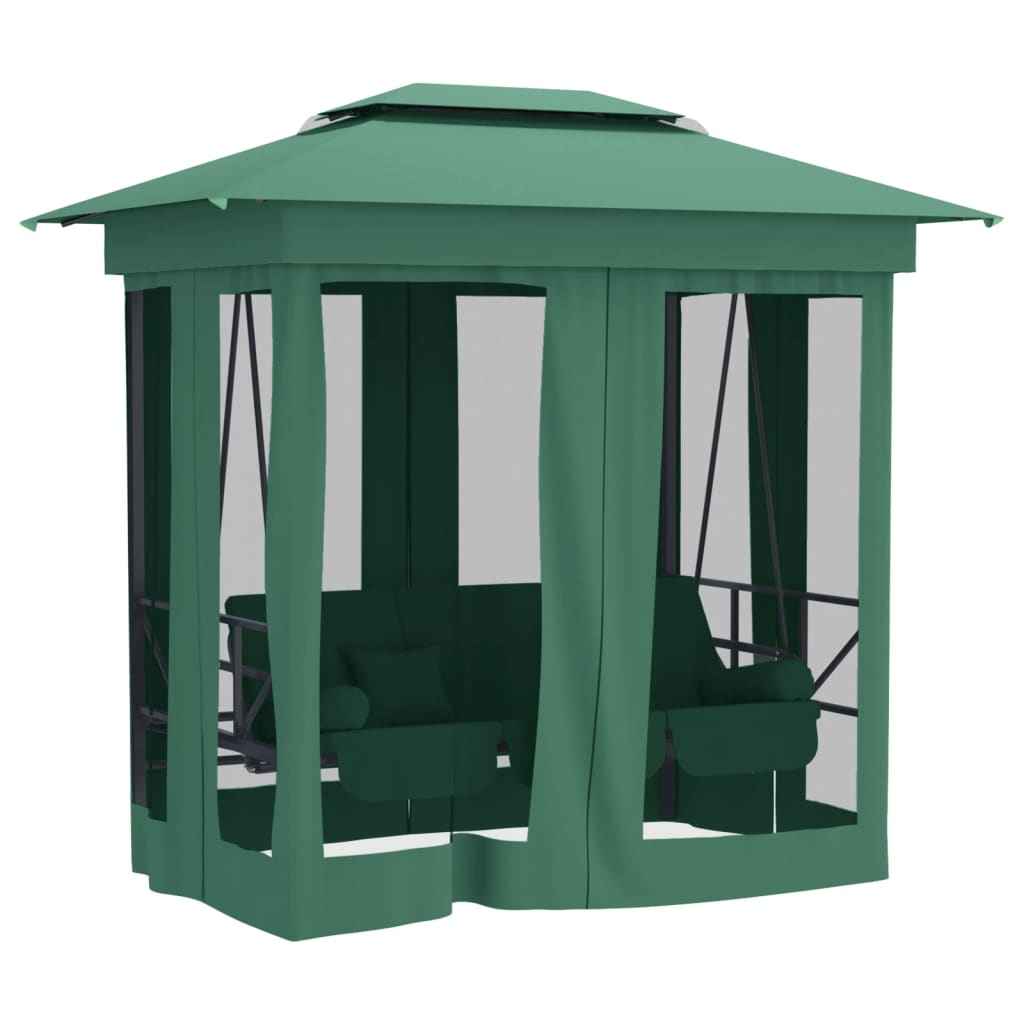 Pavilion de grădină & balansoar convertibil verde textil & oțel