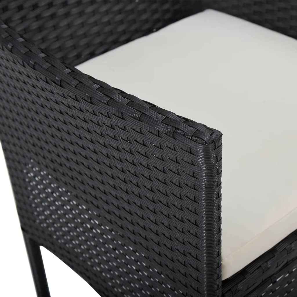 Realizat dintr-un cadru de oțel solid și poliratan împletit manual și rezistent la intemperii, acest set de scaune este rezistent la rugină și mucegai, bucurându-se de o durată lungă de viață. Spătarul curbat și brațele îi oferă o formă mai ergonomică, pentru un plus de confort. Setul include perne pentru un sprijin suplimentar, iar husa cu fermoar se poate îndepărta, pentru a fi curățată cu ușurință. Pachetul de livrare include 2 scaune.
