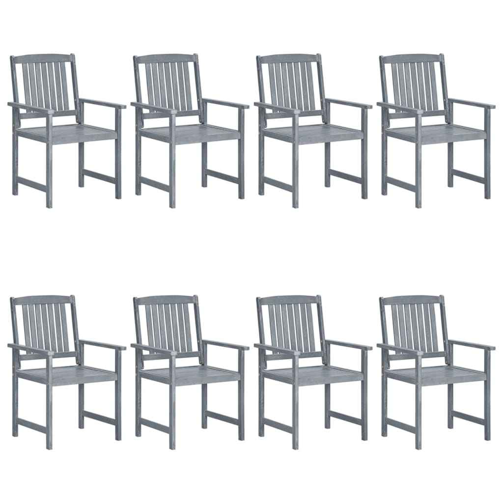 Acest scaun de exterior este fabricat din lemn masiv de acacia, un lemn de esență tare cu fibre dense, cu finisaj gri decolorat. Lemnul masiv de acacia are, de asemenea, forța de a susține greutatea și de a rezista la uzura timpului. Acest set de scaune din lemn este stabil, durabil și rezistent la intemperii. În plus, suprafața scaunului este ușor de curățat cu o cârpă umedă. Pernele incluse oferă un plus de confort.