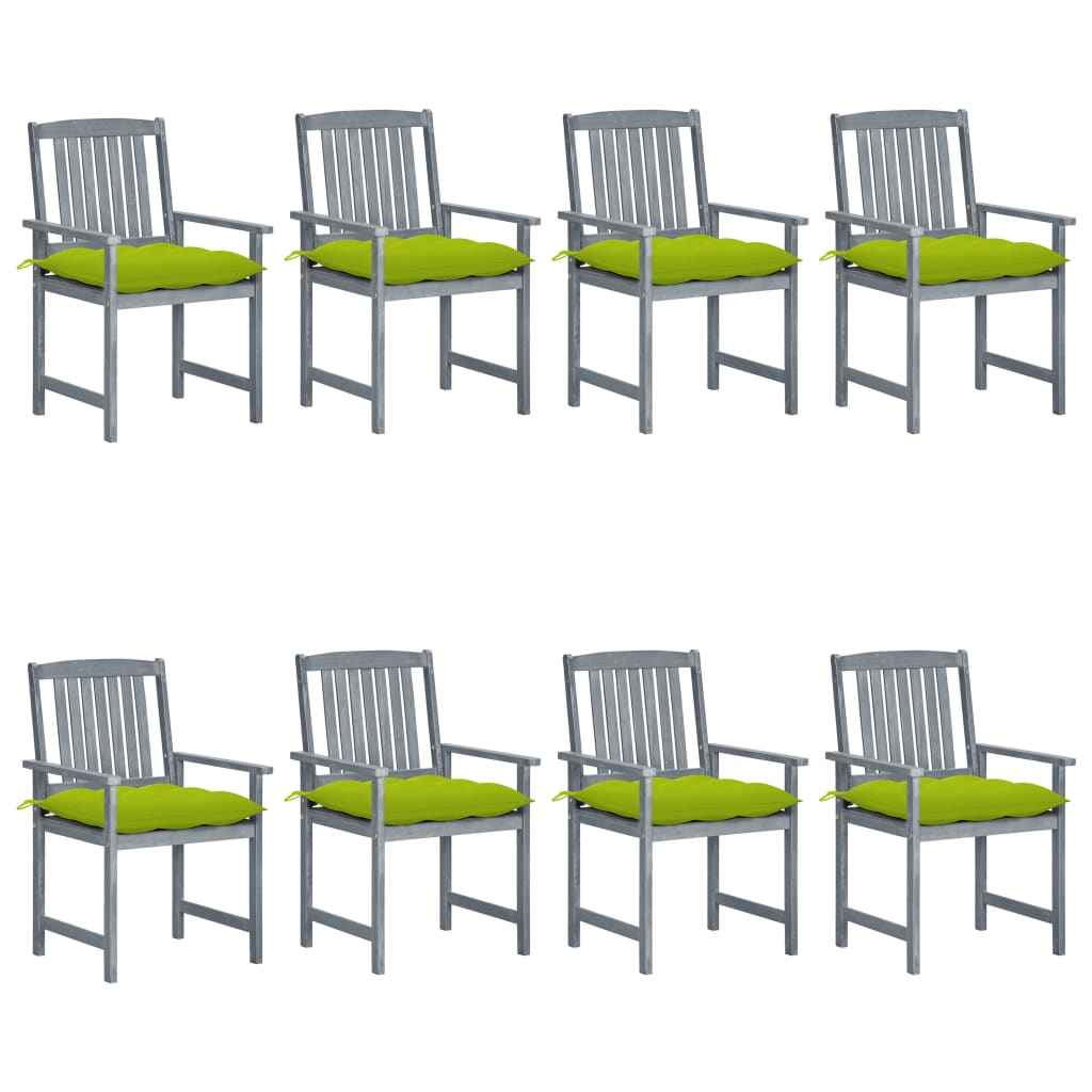 Acest scaun de exterior este fabricat din lemn masiv de acacia, un lemn de esență tare cu fibre dense, cu finisaj gri decolorat. Lemnul masiv de acacia are, de asemenea, forța de a susține greutatea și de a rezista la uzura timpului. Acest set de scaune din lemn este stabil, durabil și rezistent la intemperii. În plus, suprafața scaunului este ușor de curățat cu o cârpă umedă. Pernele incluse oferă un plus de confort.