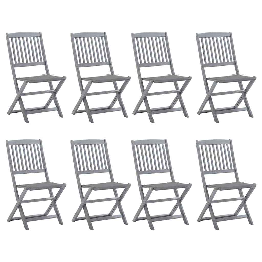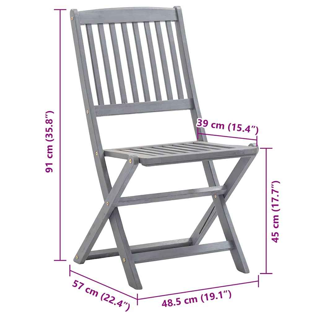 Aceste scaune de masă sunt fabricate din lemn masiv de acacia, un lemn tropical de esență tare, fiind rezistente la intemperii și durabile pentru ani lungi de utilizare. Lemnul masiv de acacia, are forța de a suporta greutatea și uzura timpului. Suprafața cu finisaj gri este ușor de curățat cu o cârpă umedă. Scaunele pot fi pliate pentru a economisi spațiu, atunci când nu sunt utilizate. În plus, pernele incluse oferă un plus de confort în timpul relaxării sau al servirii mesei. Fiecare pernă are două seturi de sfori, pentru o fixare mai bună pe scaun.