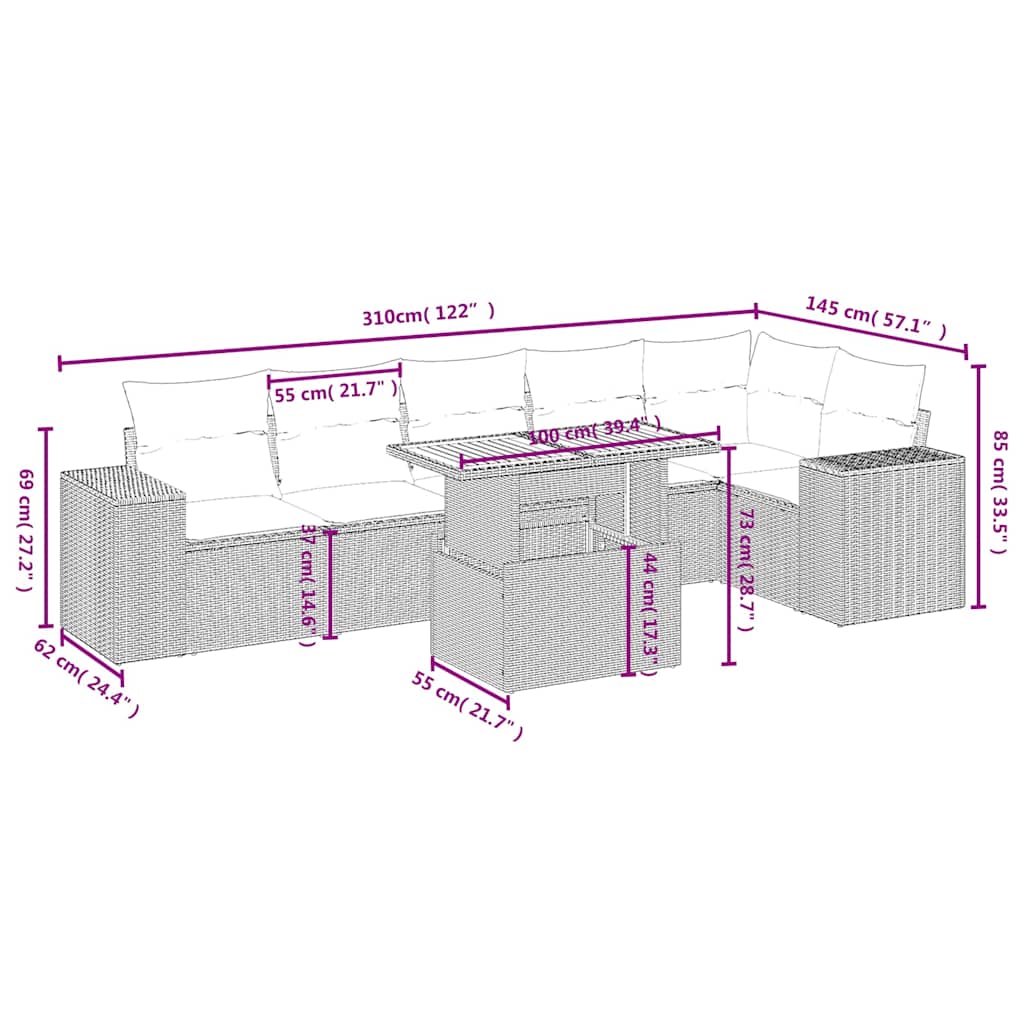 Set canapele de grădină, 7 piese, cu perne, bej, poliratan