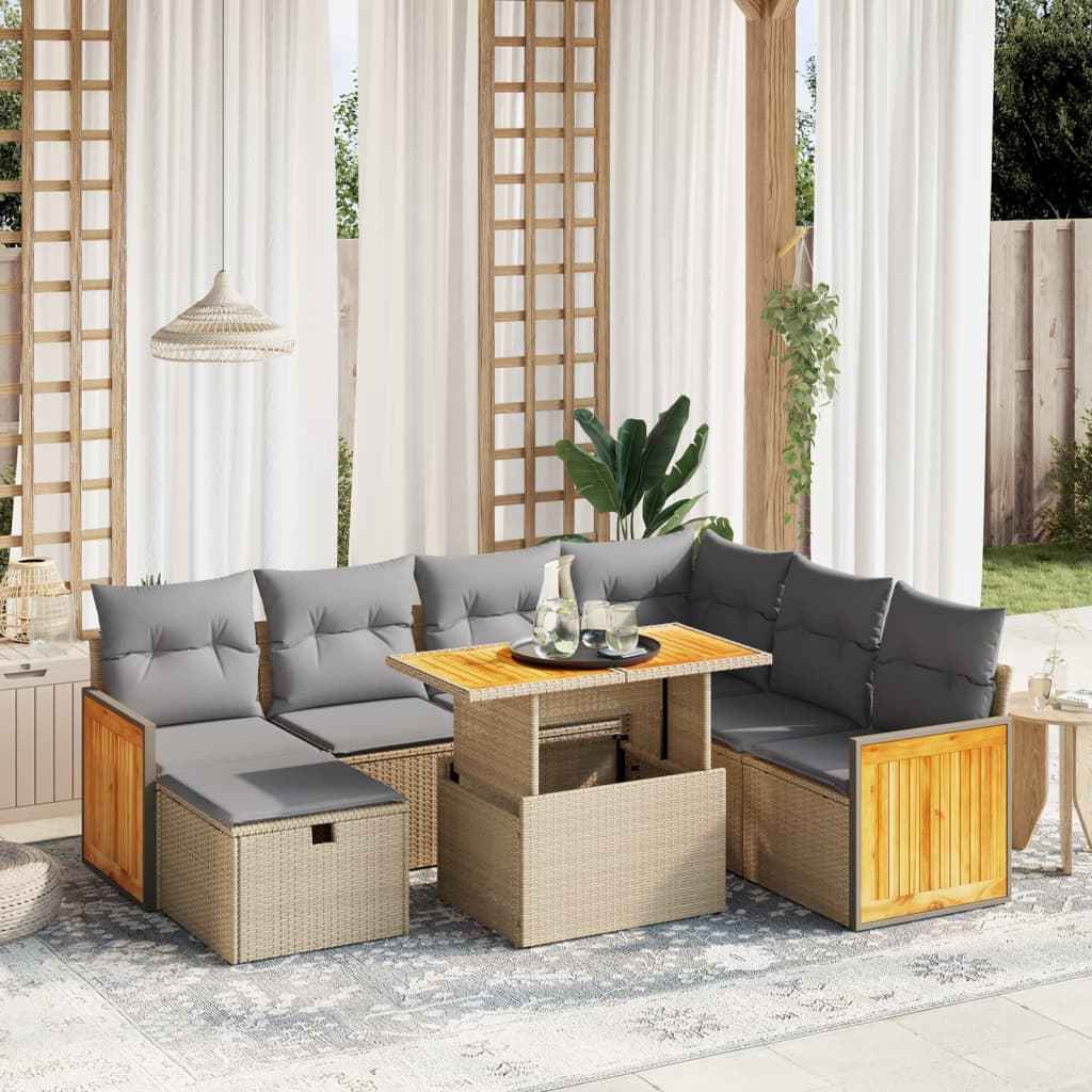 - Material: Ratan PE, oțel vopsit electrostatic, lemn masiv de acacia cu finisaj în ulei