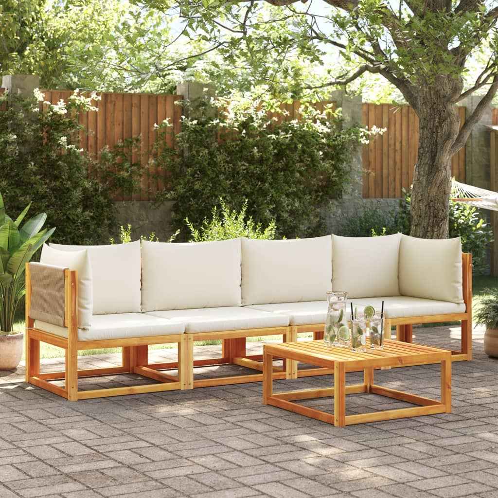 Set canapele de grădină cu 4 piese, lemn de acacia și frânghie