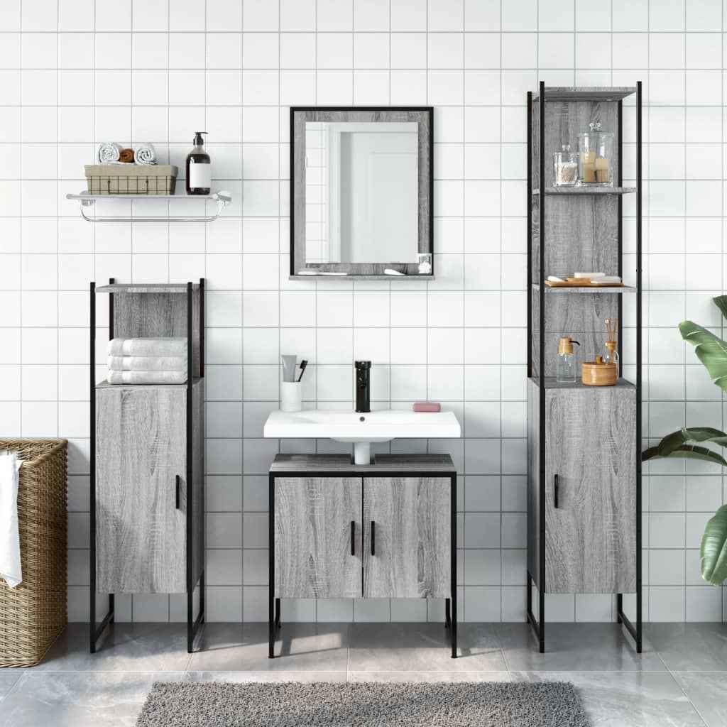 Acest set atractiv de dulapuri de baie, cu spațiu amplu de depozitare, are un design elegant, dar practic.