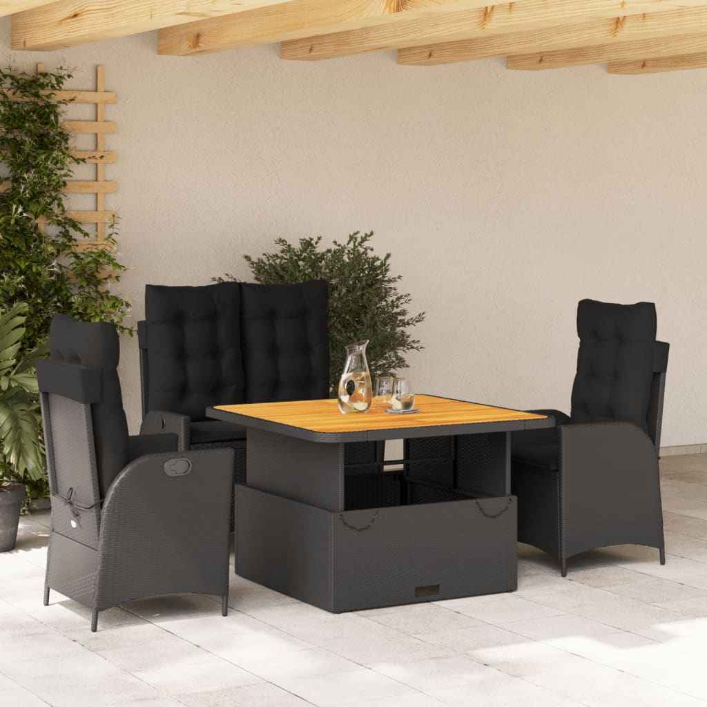 - Material: Ratan PE, oțel vopsit electrostatic, lemn masiv de acacia cu finisaj în ulei