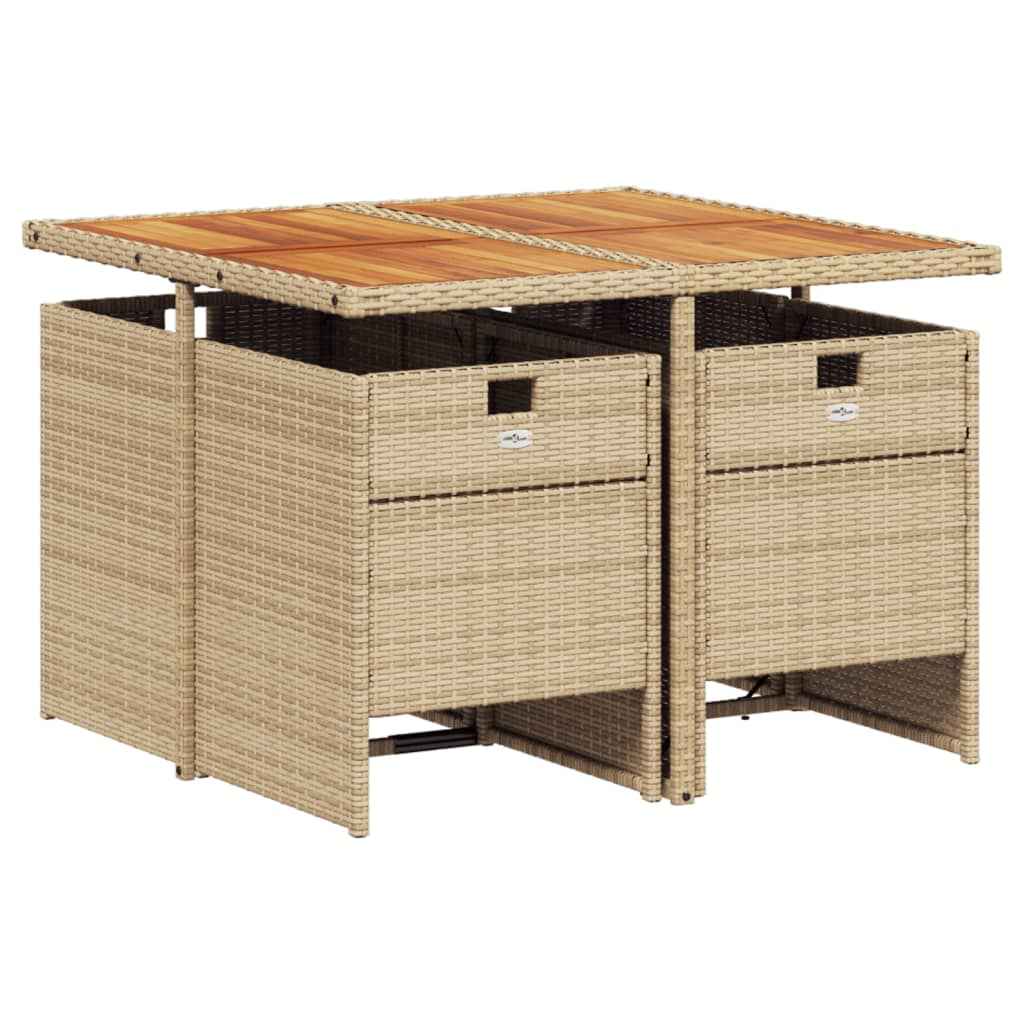 - Material: Ratan PE, oțel vopsit electrostatic, lemn masiv de acacia cu finisaj în ulei